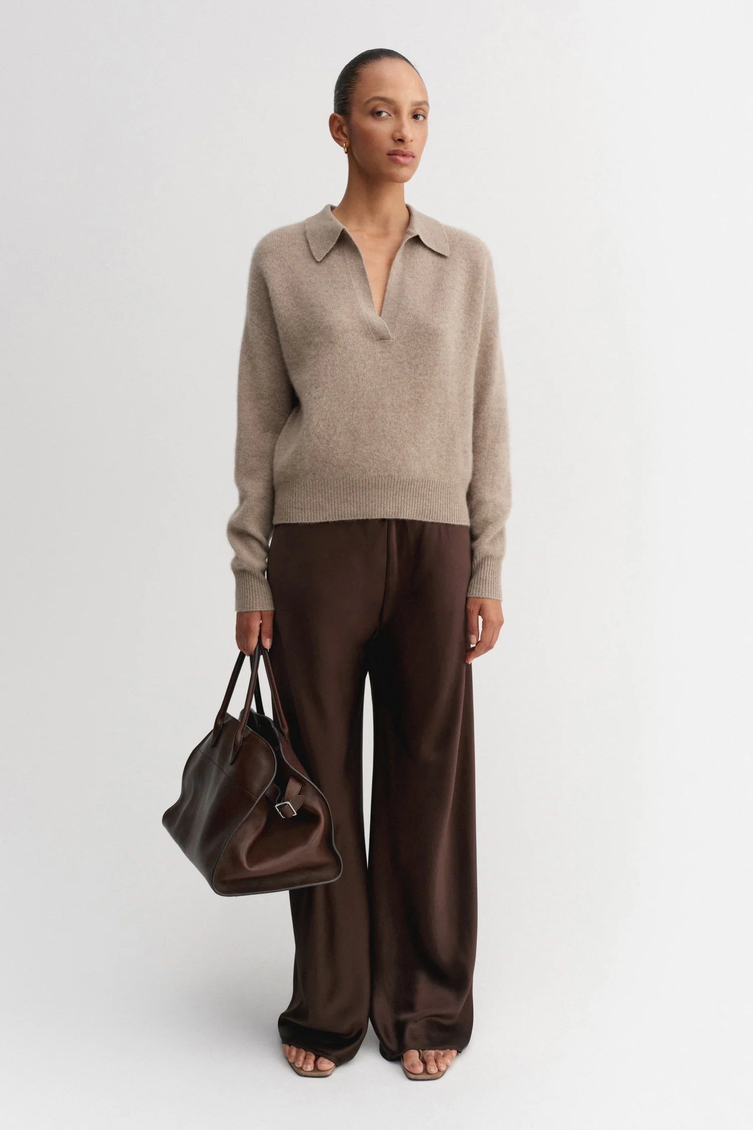 Kaia Collar Sweater is knitted from super soft cashmere, providing a smooth and itch-free feel against the skin. The sweater is designed for a timeless, laid-back appeal with a slightly cropped hem. It is featured with a classic V-neckline that is framed by a plain polo collar. Completed with ribbed cuffs and hem.