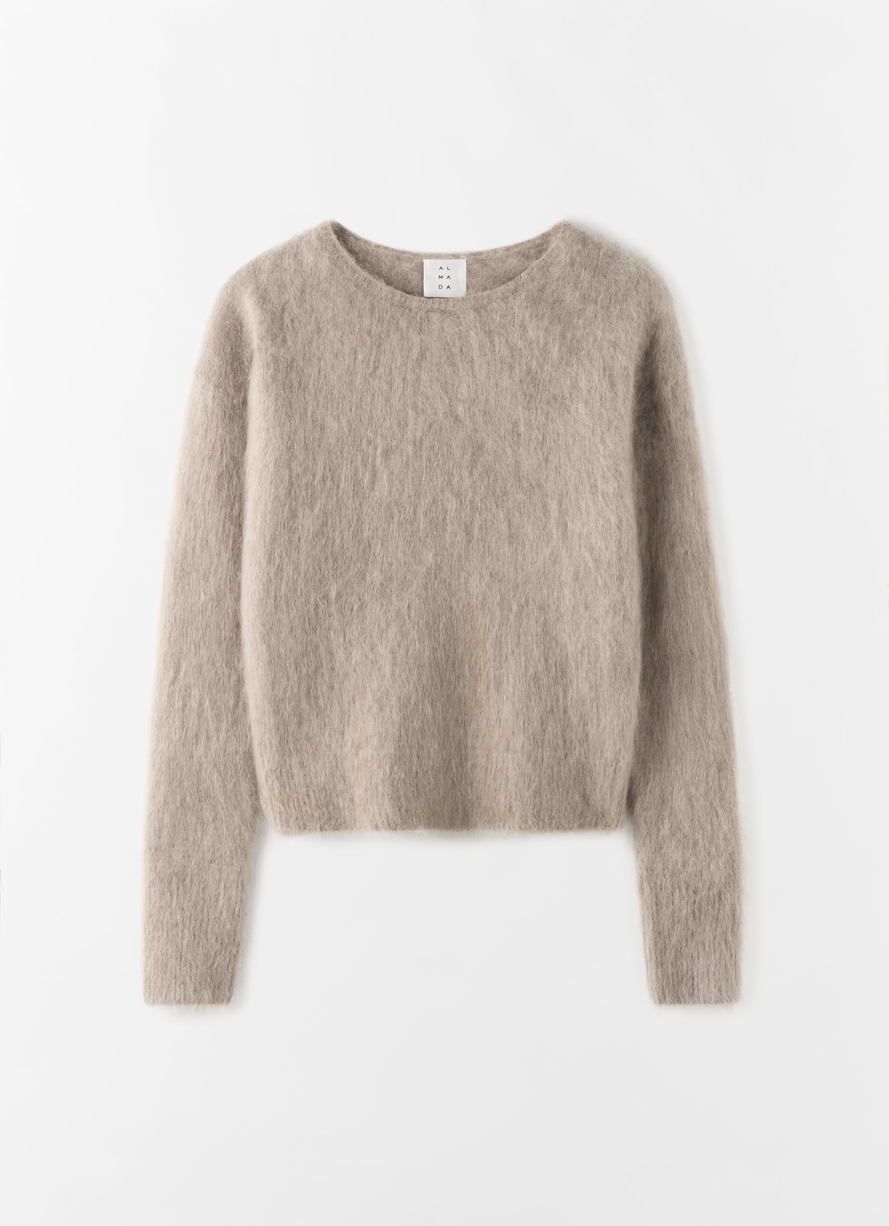 Zoe Crewneck Sweater is knitted from super soft brushed cashmere with a hairy finish. The sweater has a slightly loose fit with a silhouette that sits tighter on the waist and end of the sleeves for easy roll up. It is featured with a classic crew neckline and dropped shoulders. Rib-knitted detailing in collar, cuffs and hem.