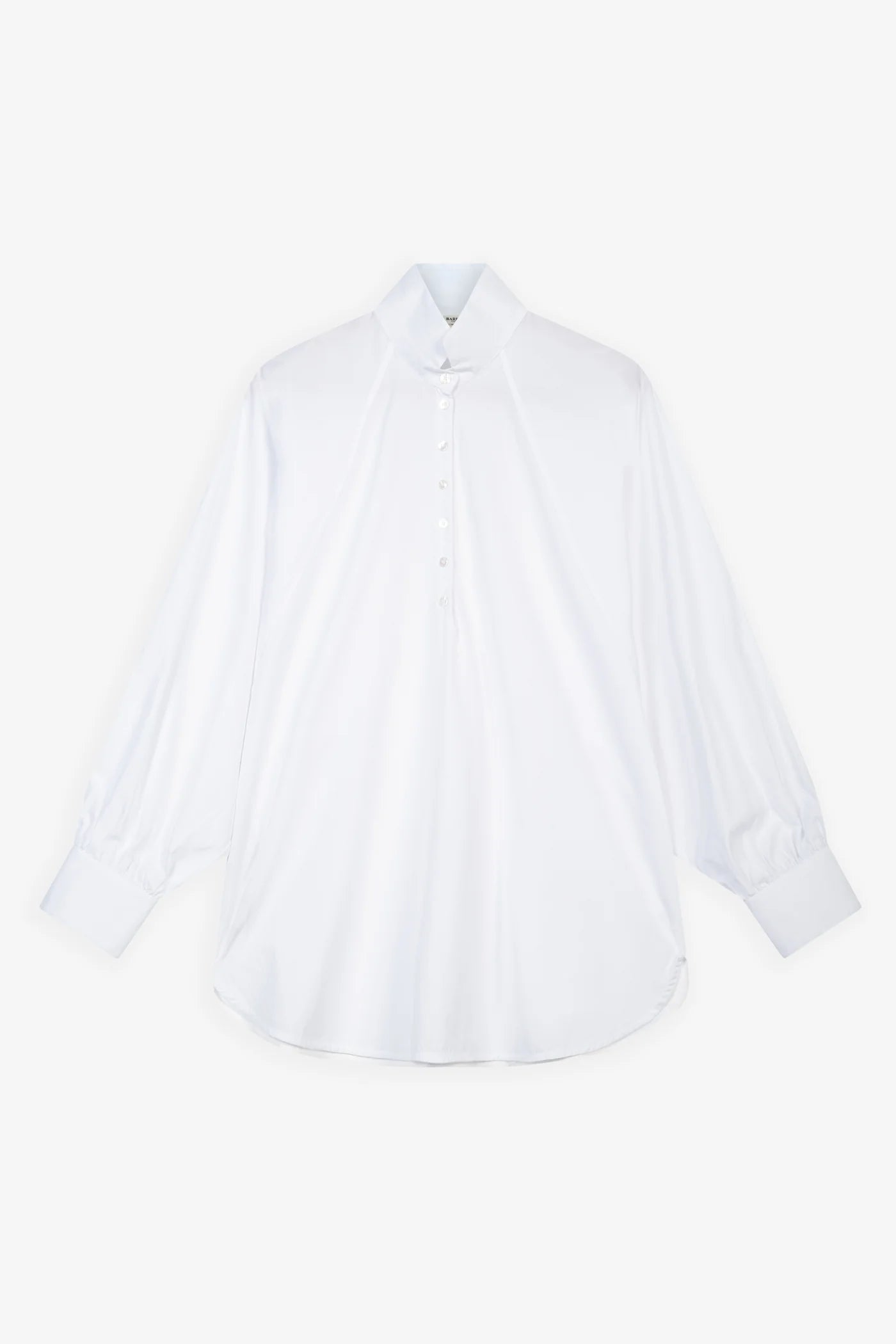 Crafted from high-quality double-twist poplin, this long shirt showcases flowing batwing sleeves and a sleek imperial collar. Soft and breathable, it combines effortless style with modern sophistication, making it a must-have piece in any wardrobe.