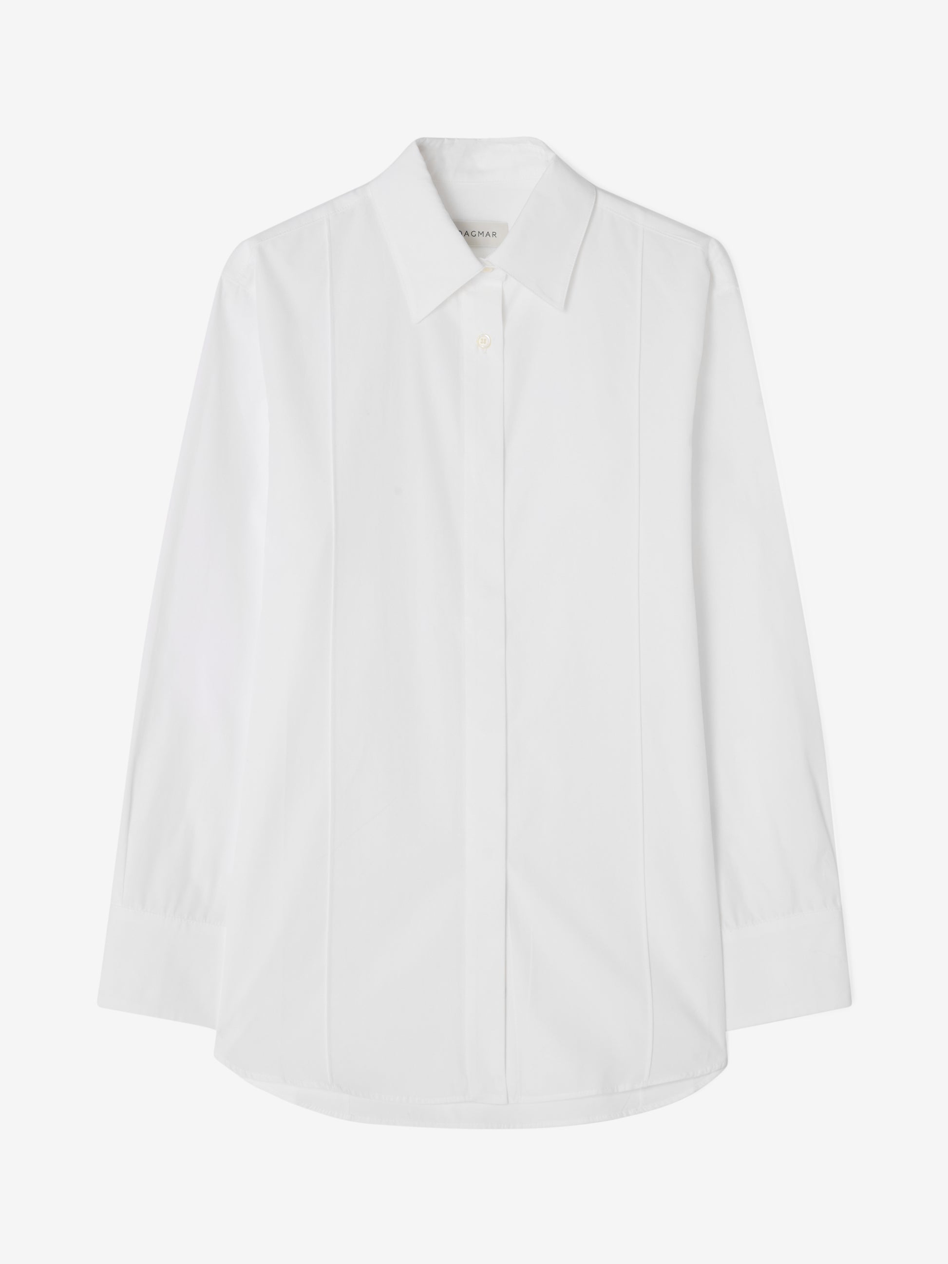 Lightweight shirt made from crisp organic cotton poplin, featuring an oversized silhouette, subtly dropped shoulders, and a slit at the back, for ease and a redefined finish.