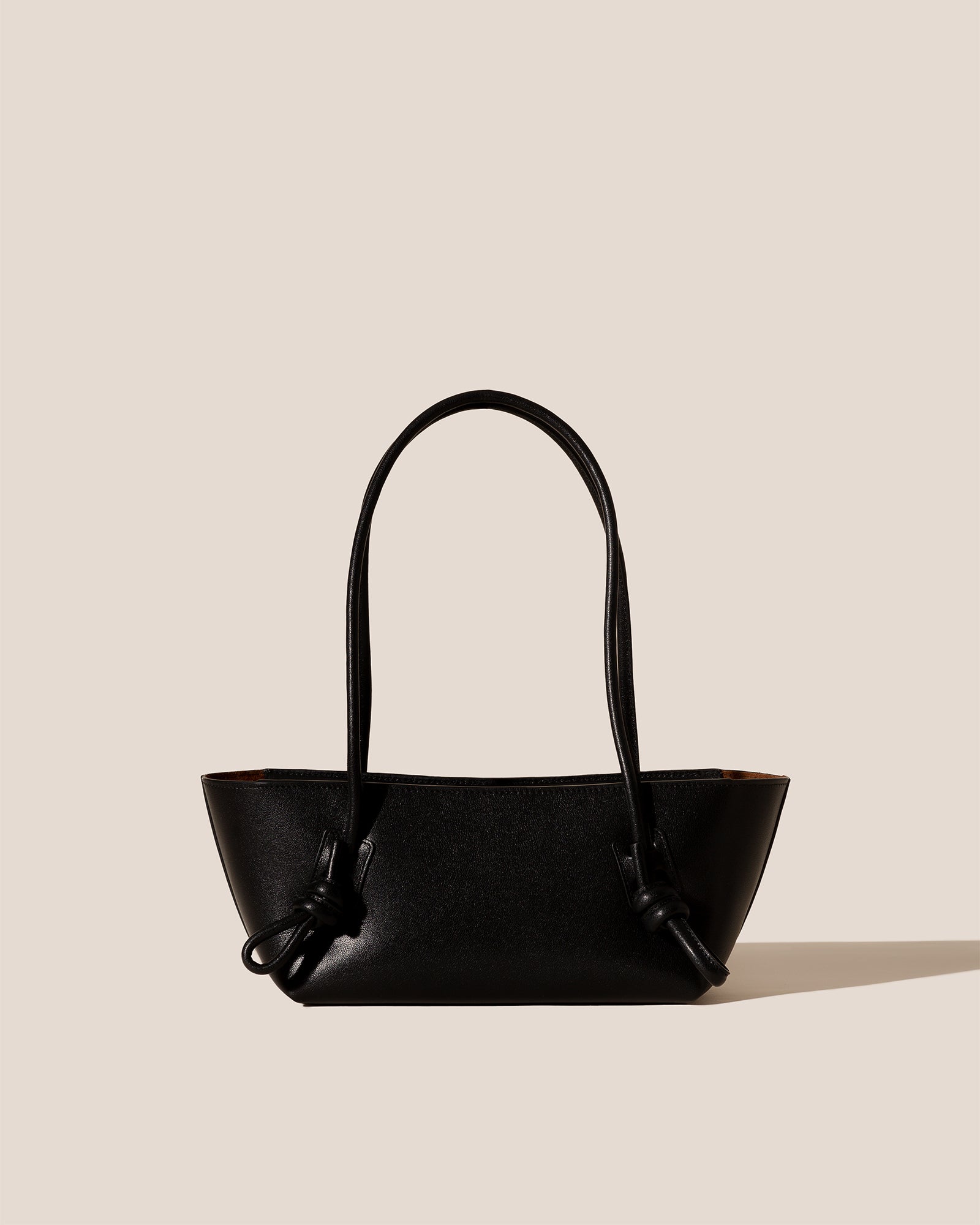 Knotted-handle shoulder bag with knotted handle detail, crafted in polished Italian calf leather and lined with calf suede.