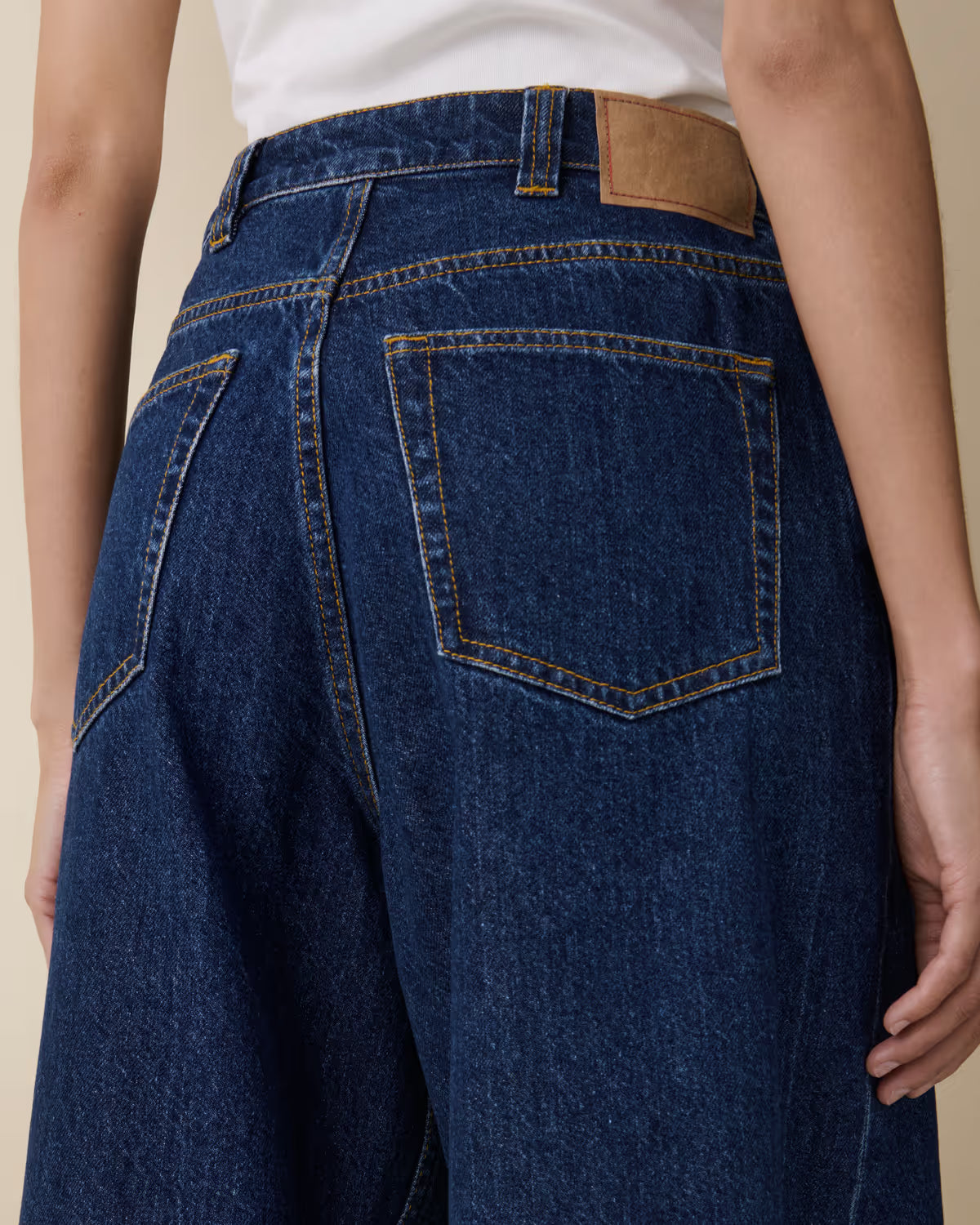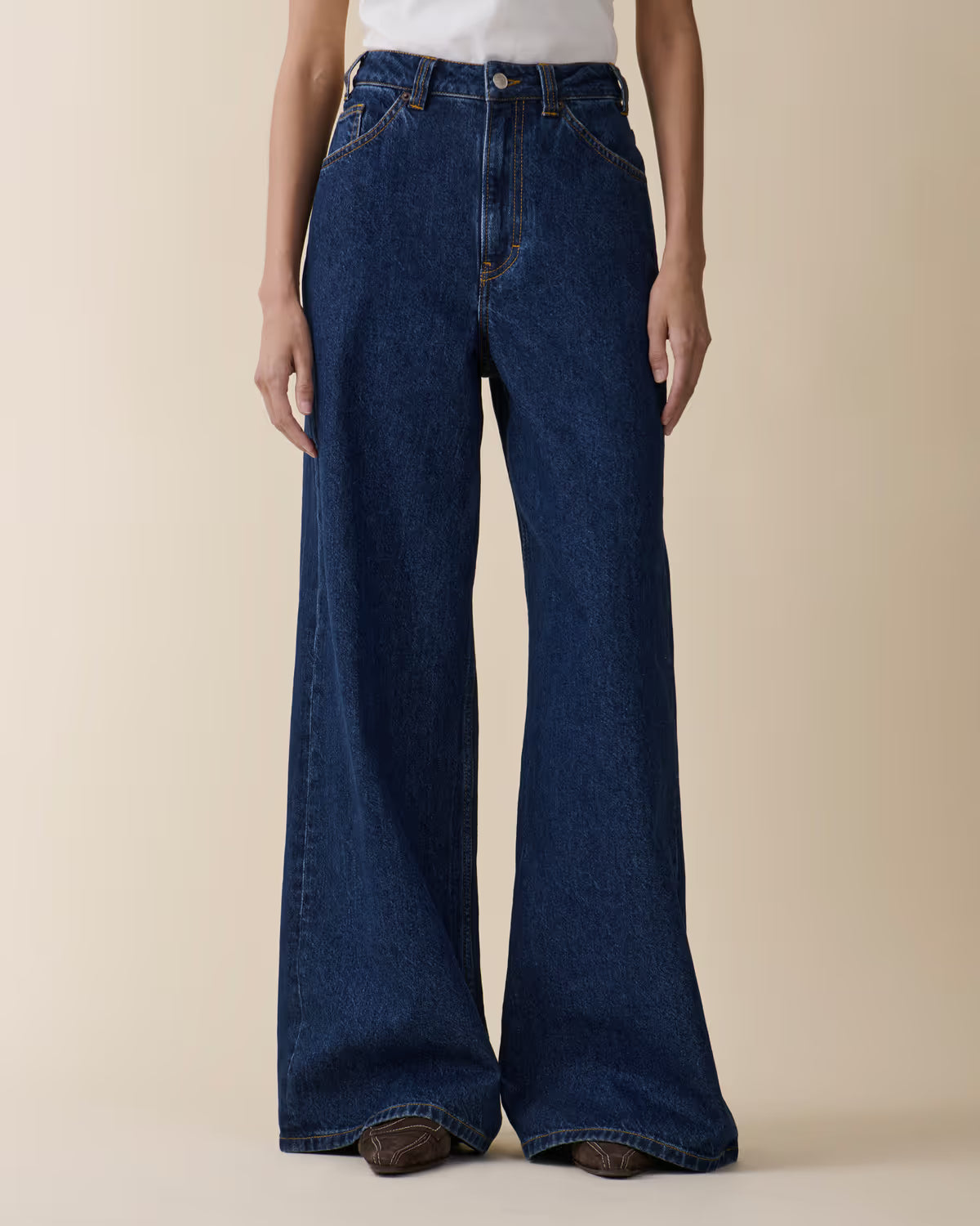 Alfama is a high-waist denim with a wide flared elegant silhouette. Featuring a fitted top, zip fly and slightly longer leg.