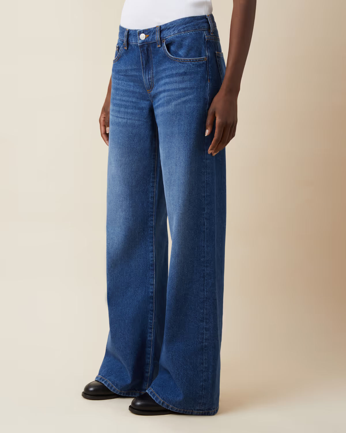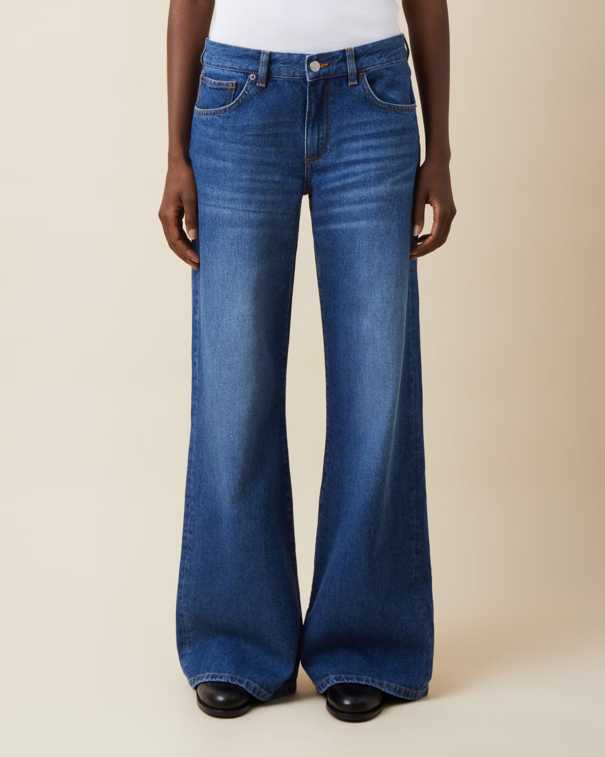 ’Kyoto’ is an effortless low waist denim with a slouchy, loose flared silhouette. Features a zip fly, low waist, and a wide leg from the thigh that becomes even wider at the bottom.