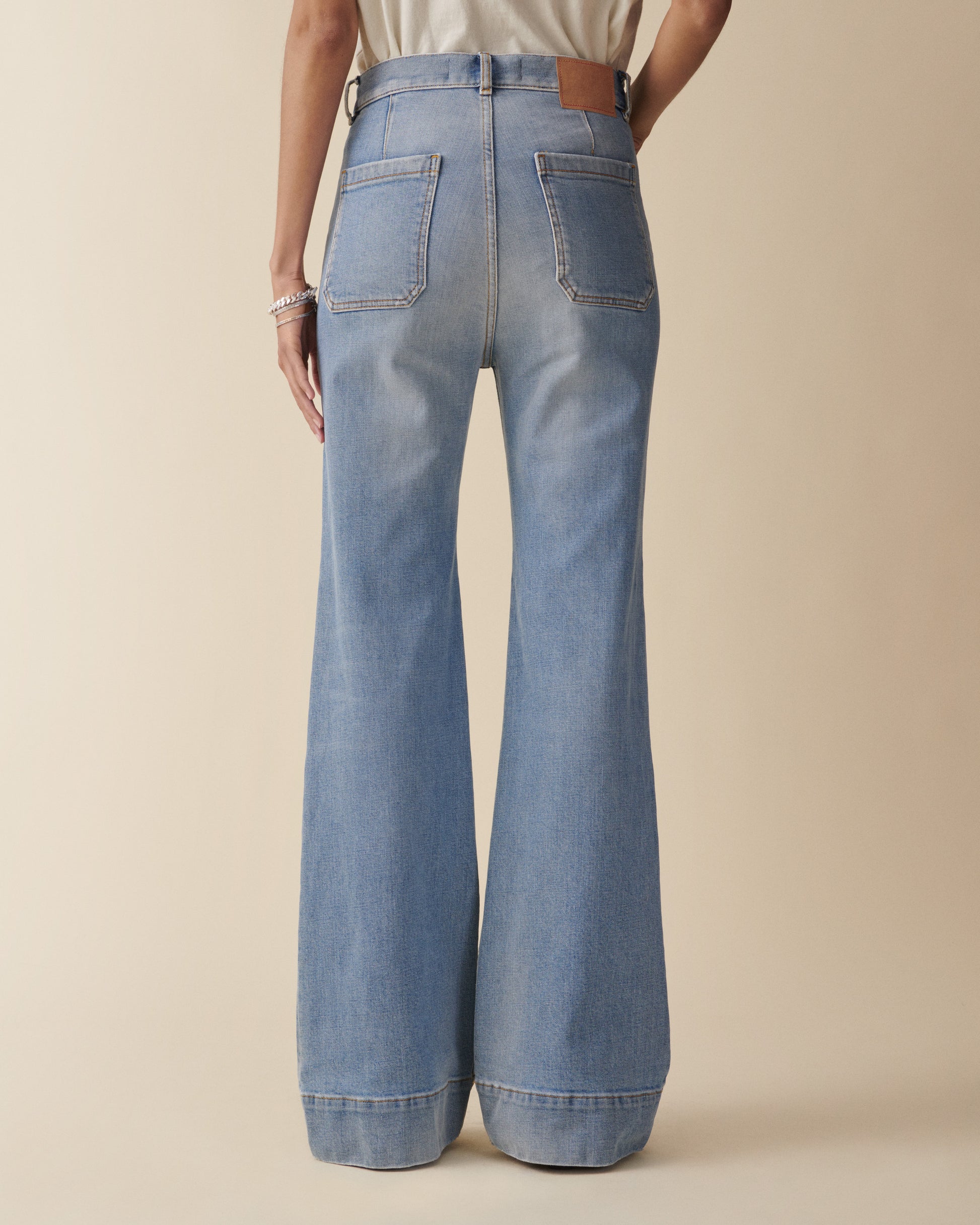 'St. Monica' looks to sailor archives of the late 1960s with its patch pockets, flares and wide hemlines. Featuring a button fly, high-rise waist and wide leg.The handcrafted nature of this wash makes every pair unique and it might appear slightly different to the image.