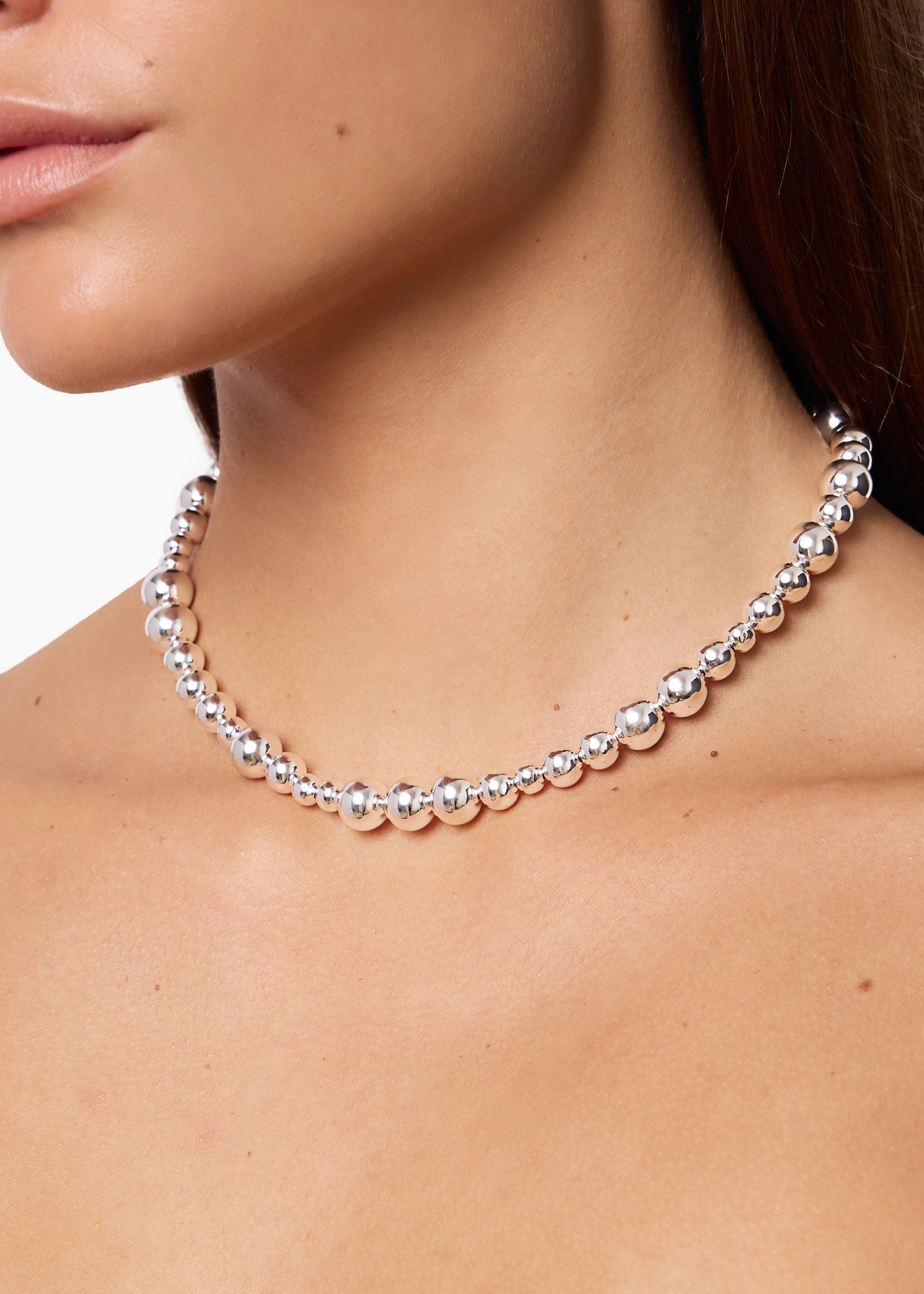 Named after the brand's founders' grandmothers who coincidentally both are named Elly. Inspired by their heirloom pearl necklaces they have worn for as long as we can remember. Made from silver-plated brass and comfortably lightweight due to the beads hollowed construction.