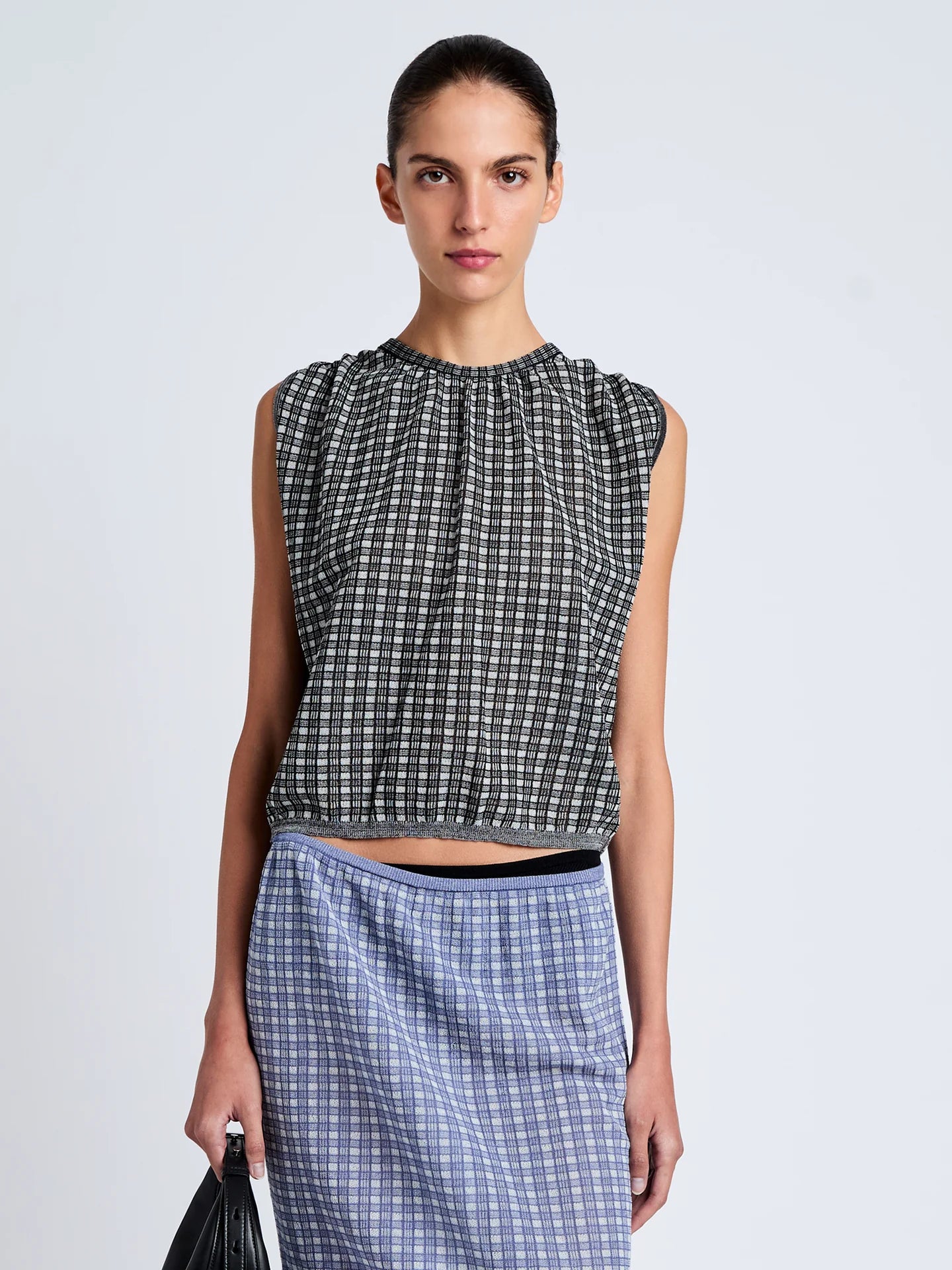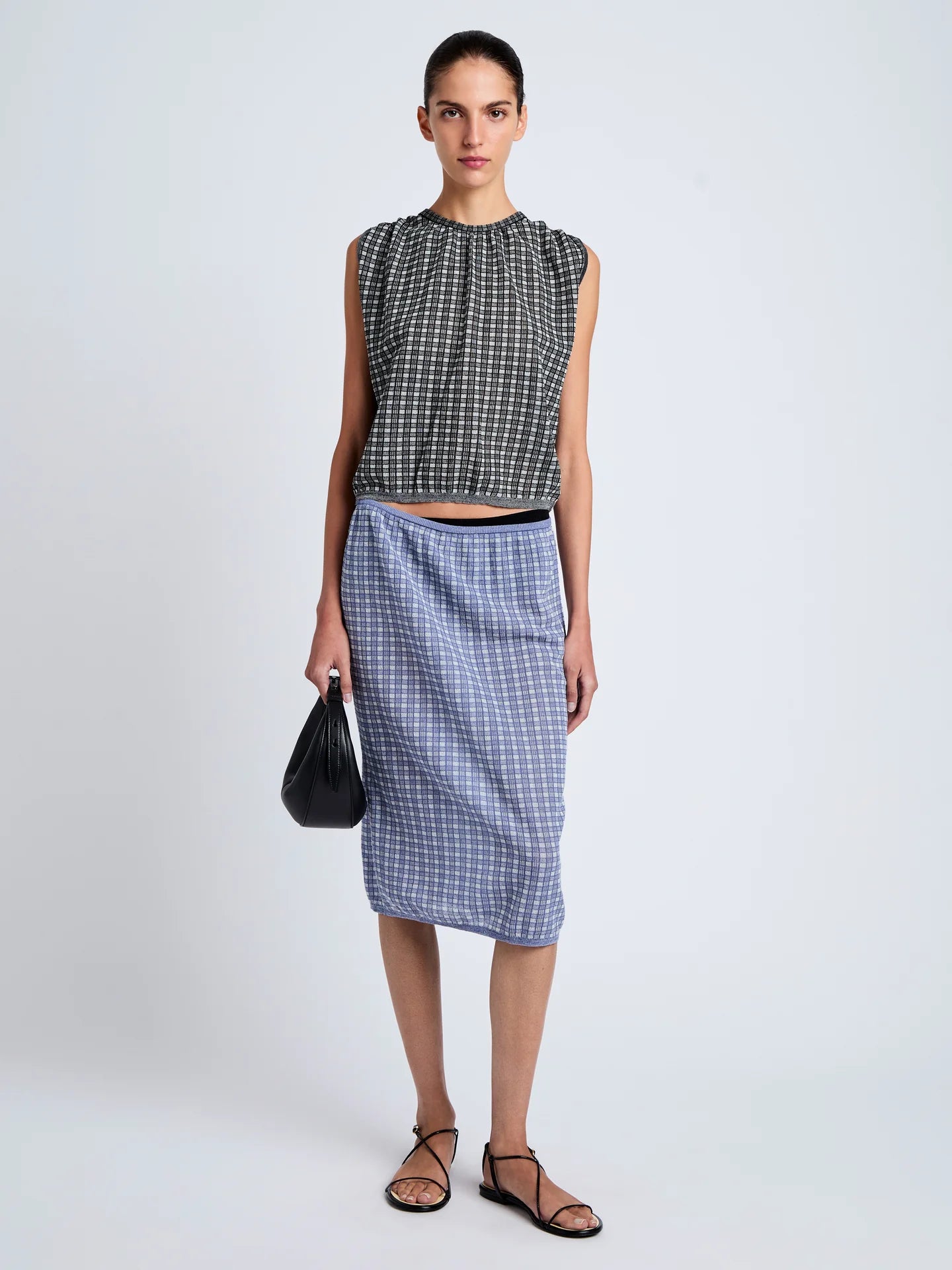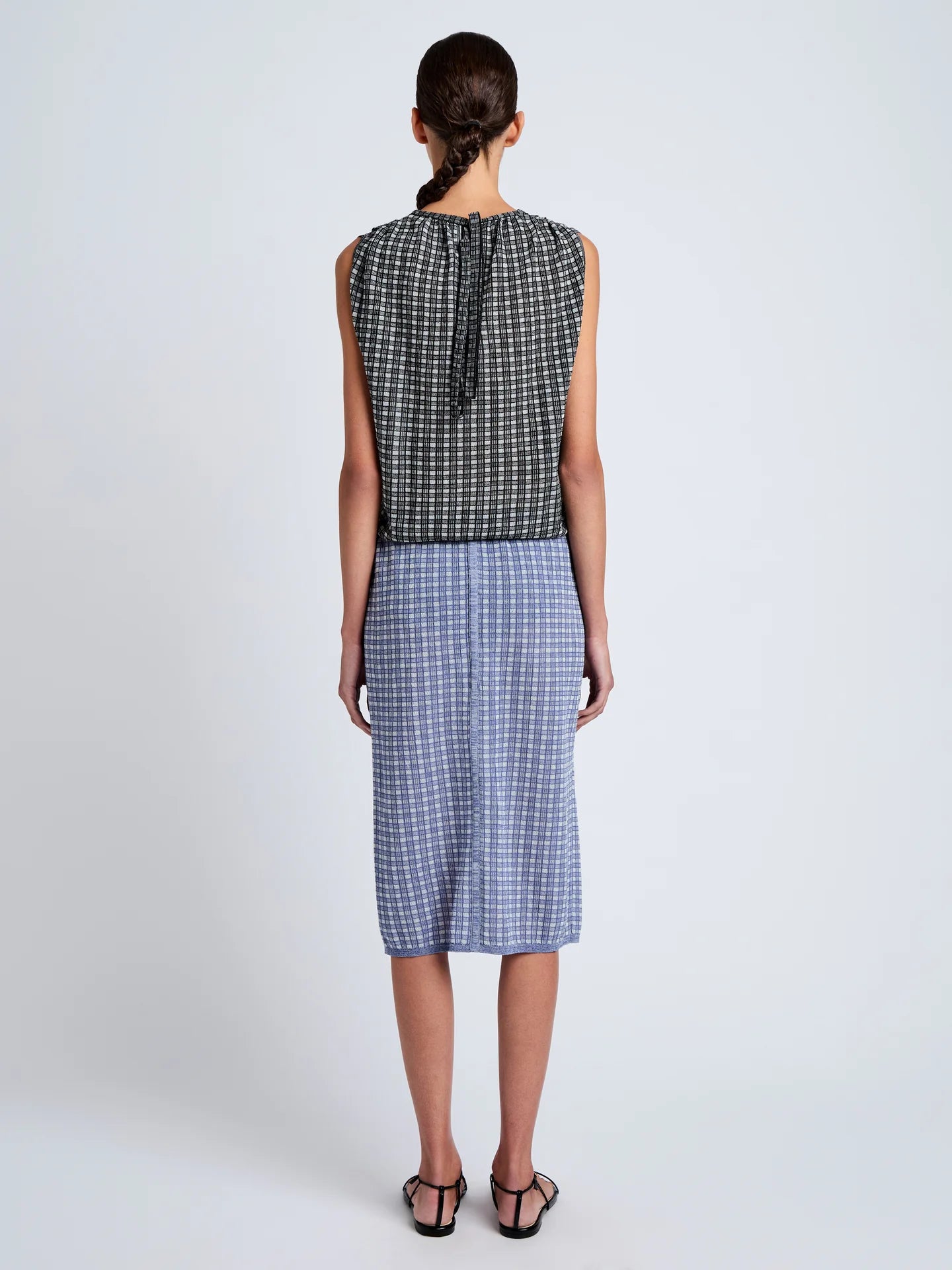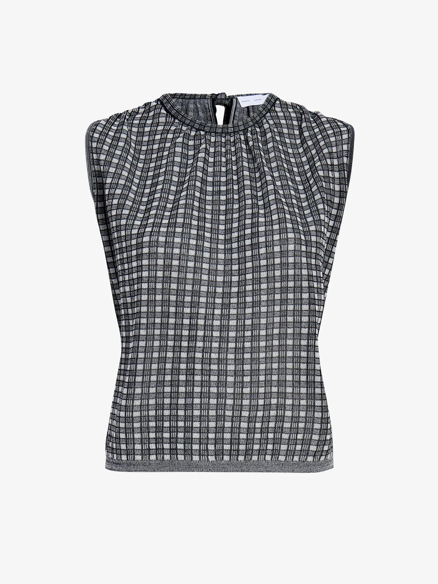 The Bradley Crewneck in Plaid Knit is crafted to a lightweight, relaxed silhouette with back neck keyhole cut-out and self-tie fastening.