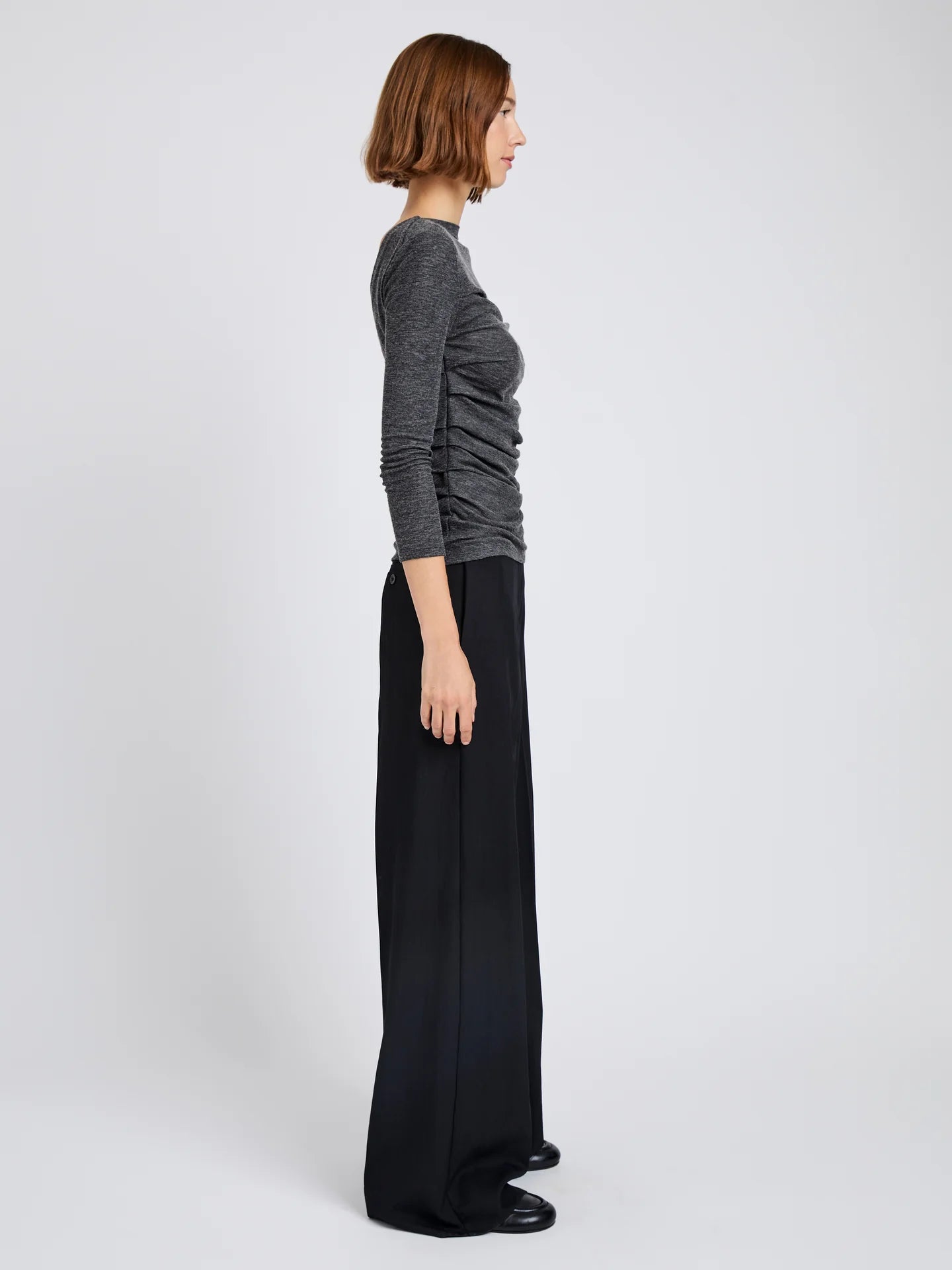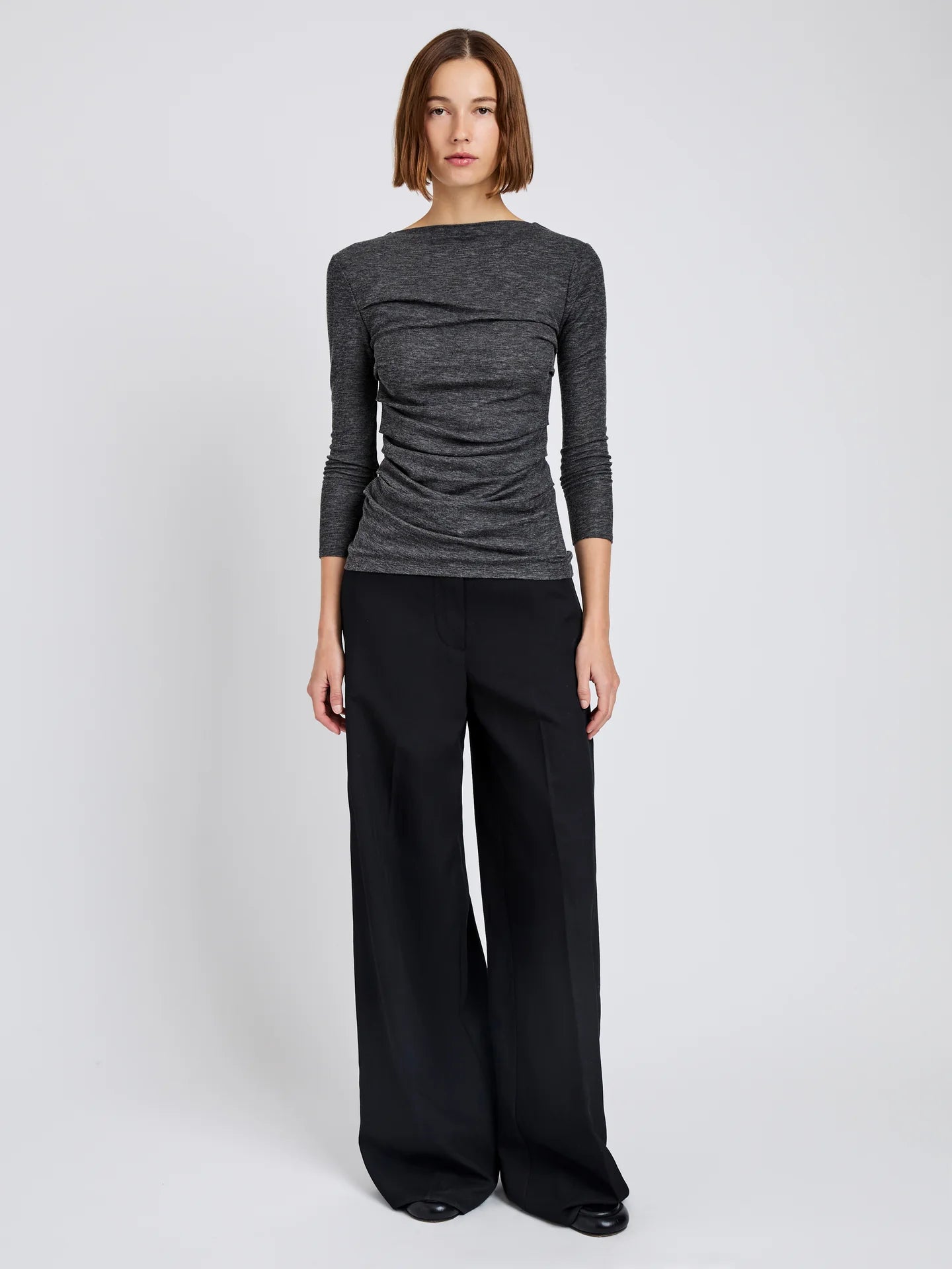 The Lydia Pant in Drapey Suiting is tailored to a fluid wide-leg silhouette, featuring a concealed front fastening and side slip pockets.