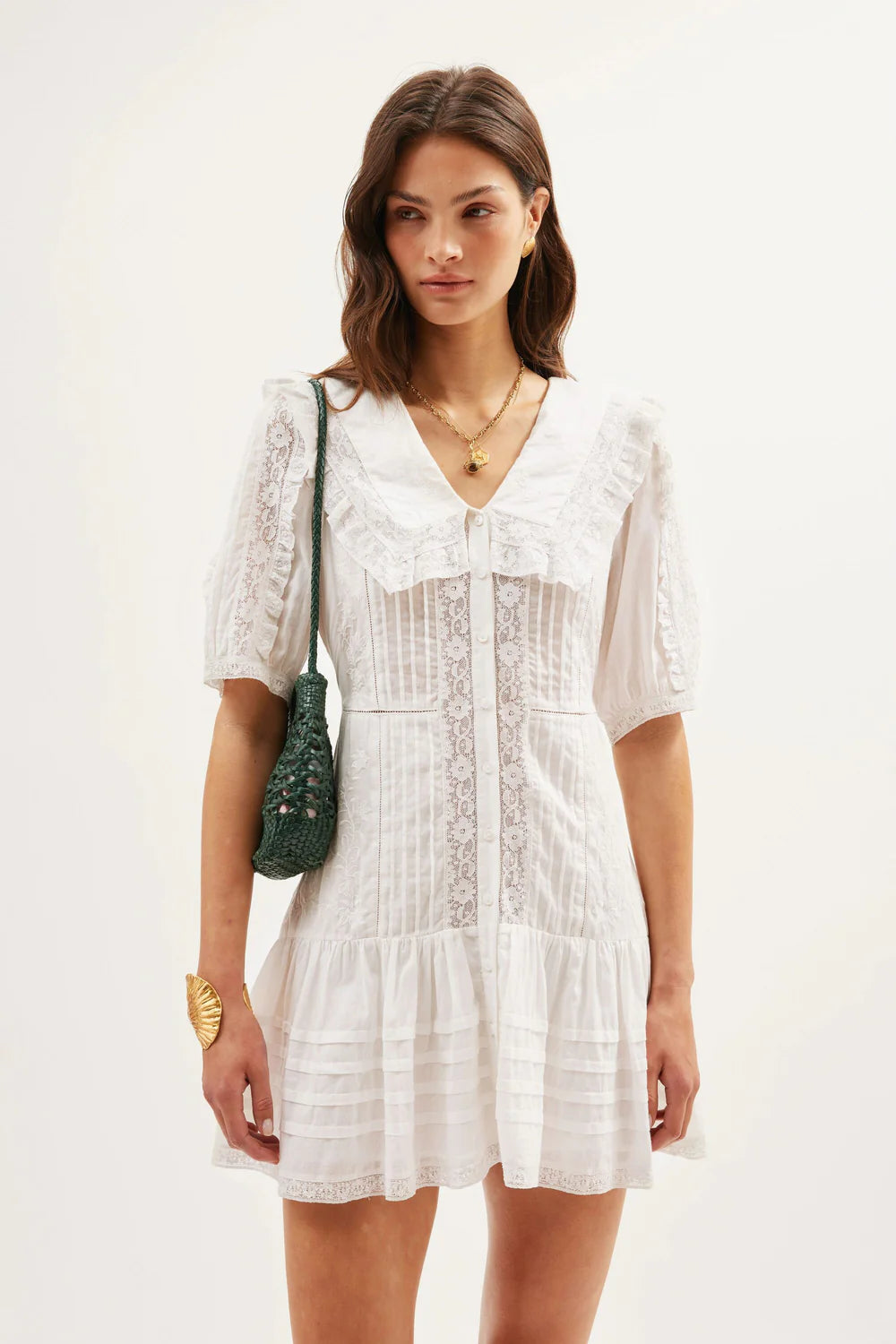 This Dove dress is based on our bestselling Maribelle Top - it's made from breezy cotton-voile with the same gorgeous lace and added embroidery.