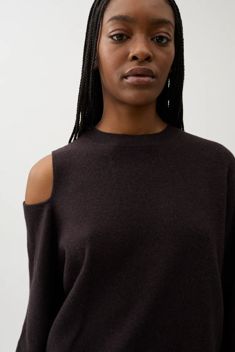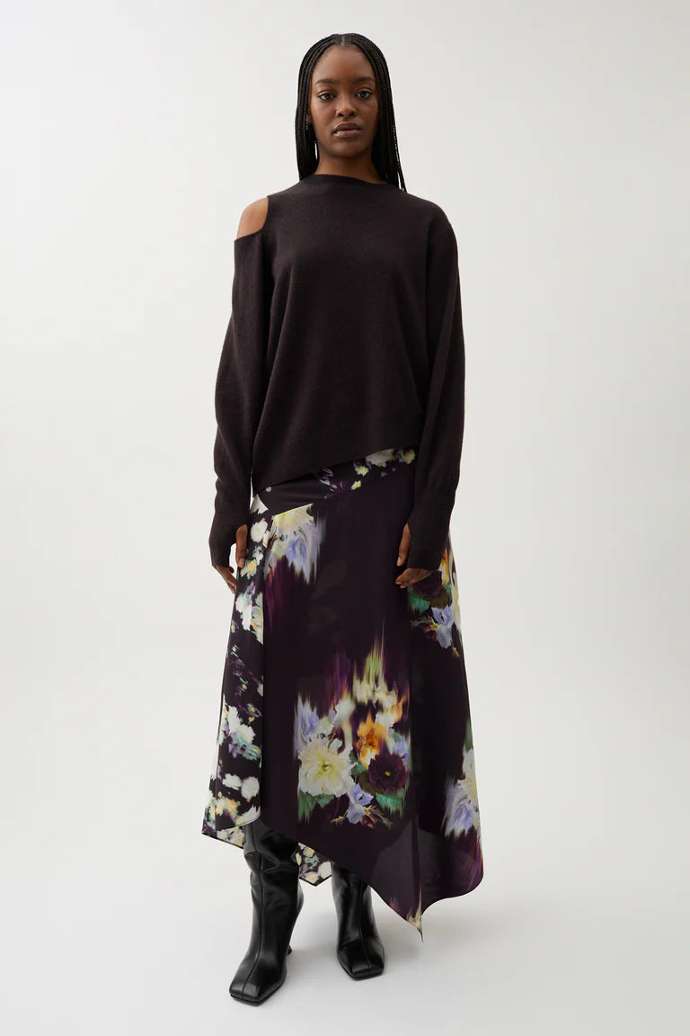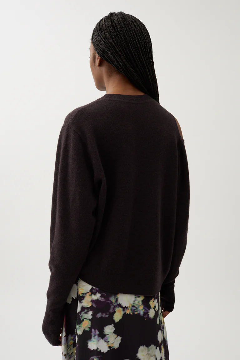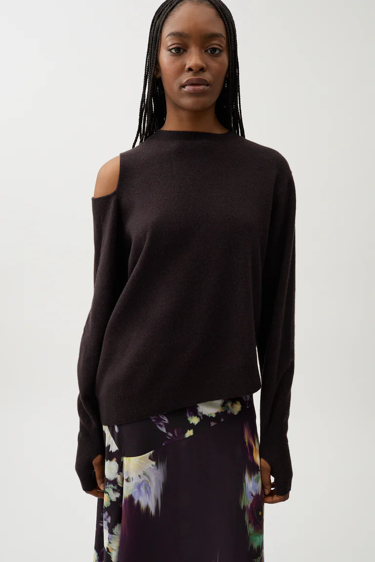 For knitwear with an expressive point of view, look to the Acer sweater. Spun from certified merino wool, it has a cut-out detail at one shoulder and thumbholes at its elongated sleeves. Its asymmetrical hemline allows for versatile styling, adding instant interest to printed pieces and tailored trousers.