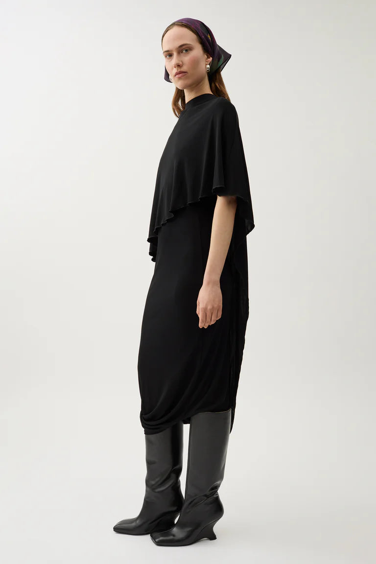 Sculptural in its softness and sophistication, the Kate dress flows down the figure with ease and elegance. Made from a sustainable viscose jersey crêpe, it is shaped with a caped crew neck to an asymmetrical silhouette with a beautiful drape.