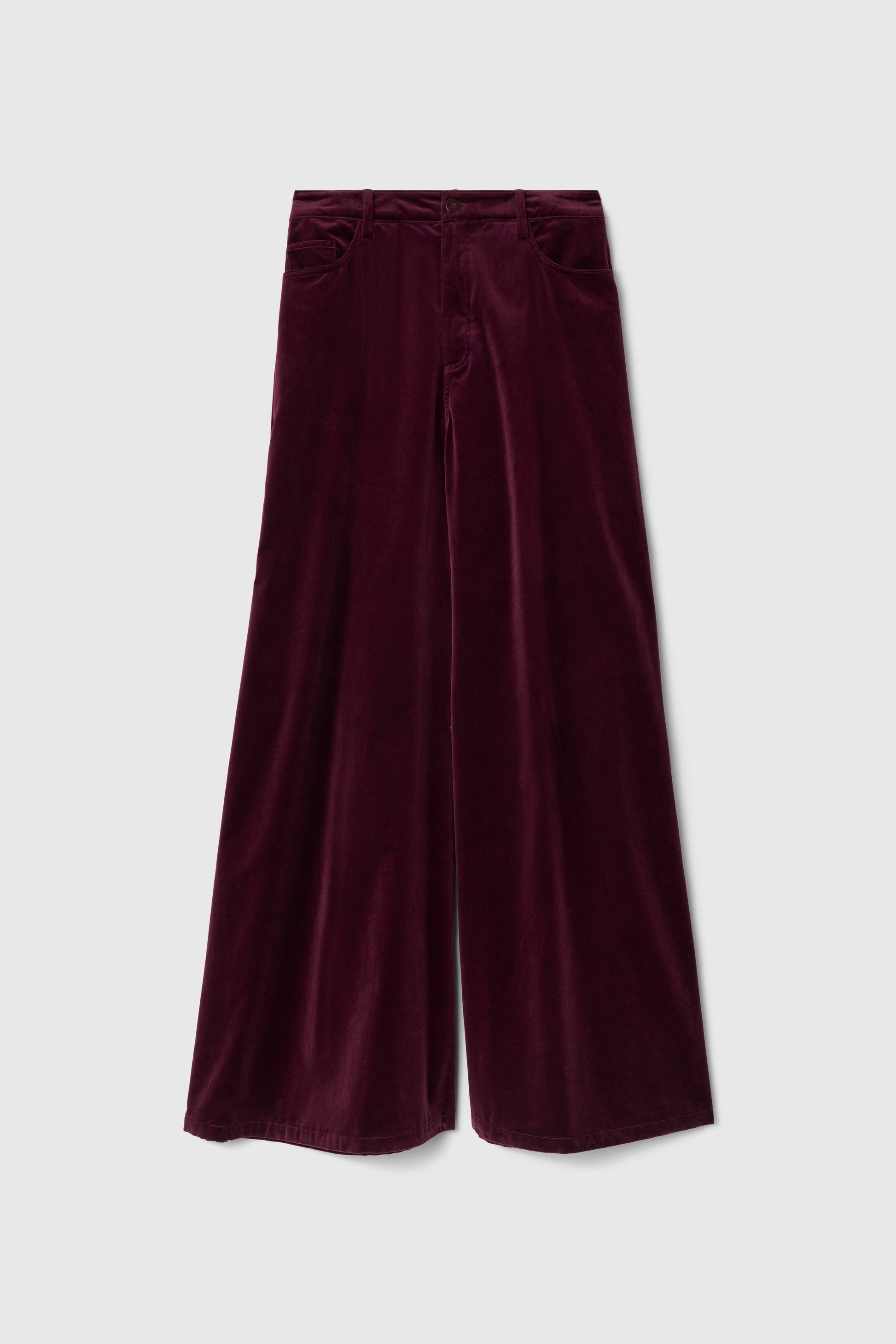 For everyday opulence, look to the Maja pants. Crafted from plush velvet in a rich plum hue, this piece is designed to a high-rise silhouette with wide legs, and is detailed with 5-pocket styling. Style yours with tactile knitwear and tailored blazers like.