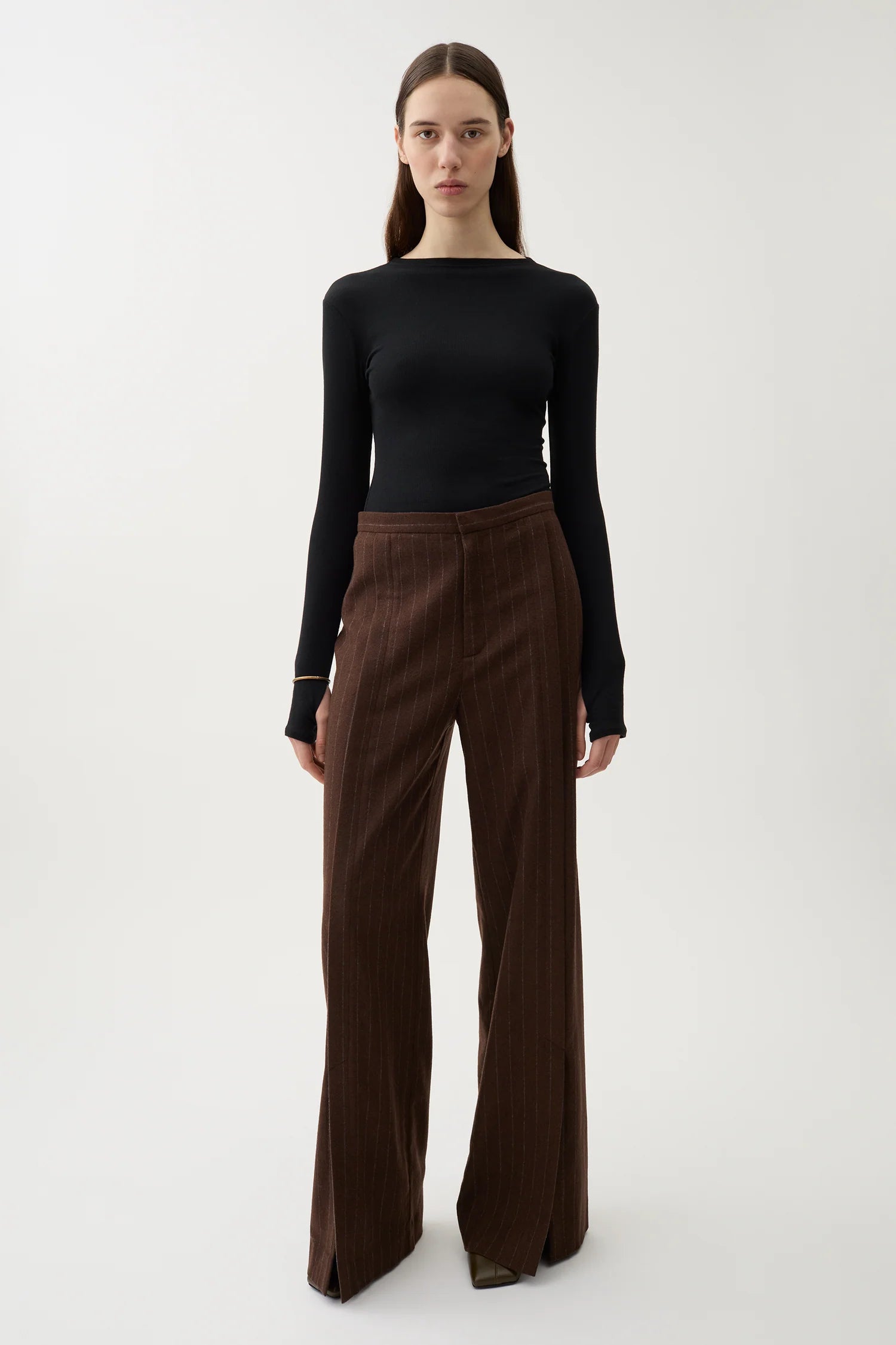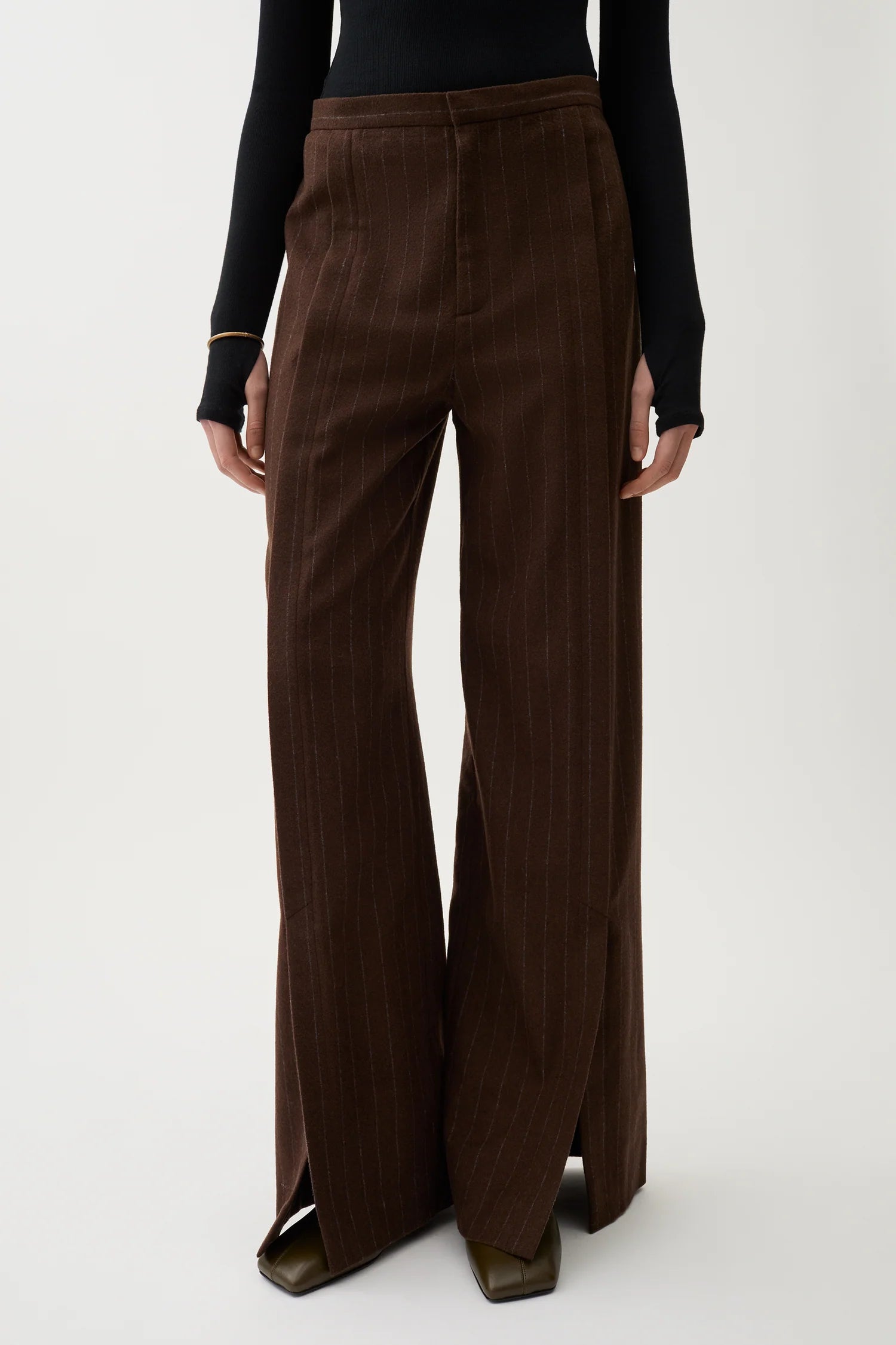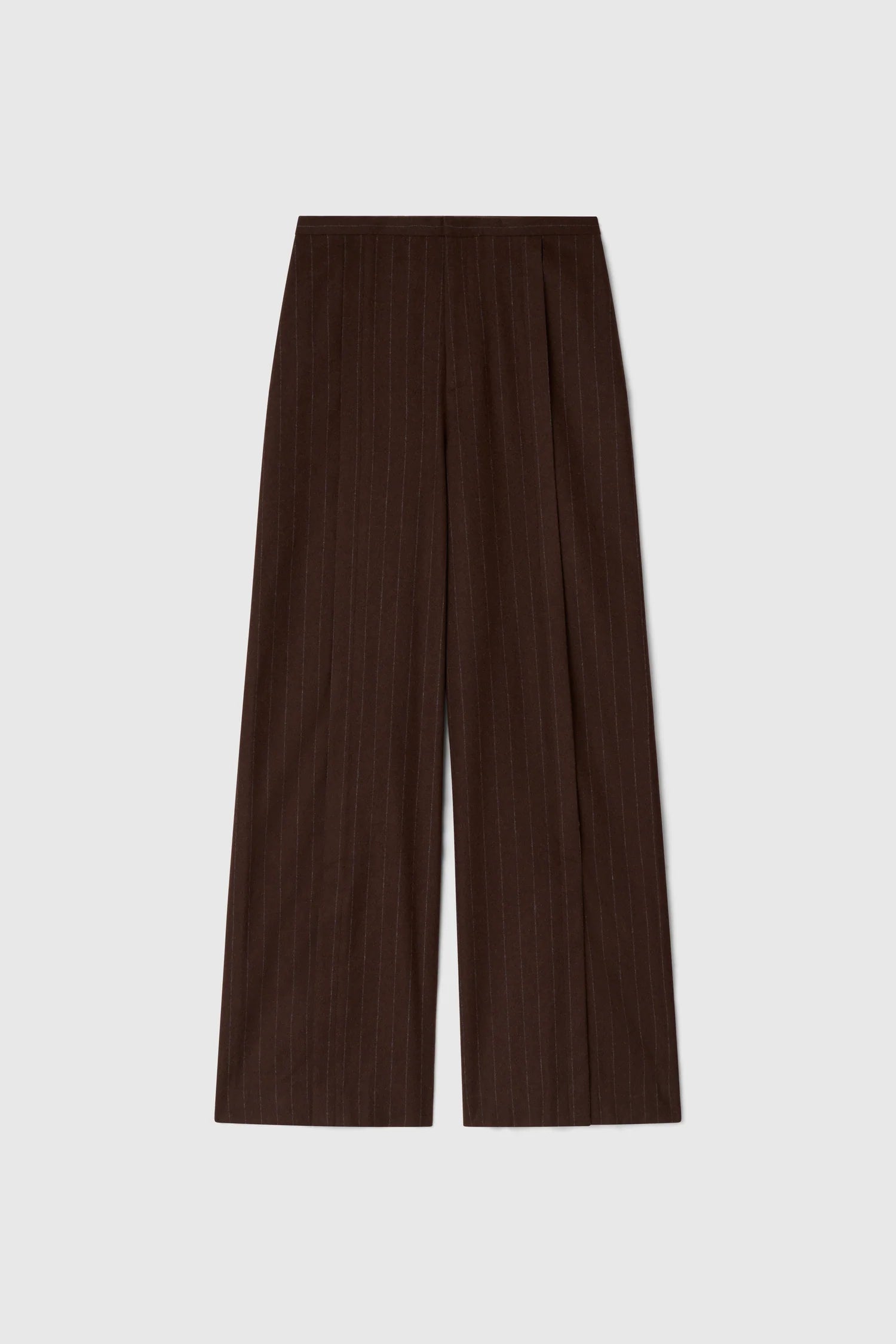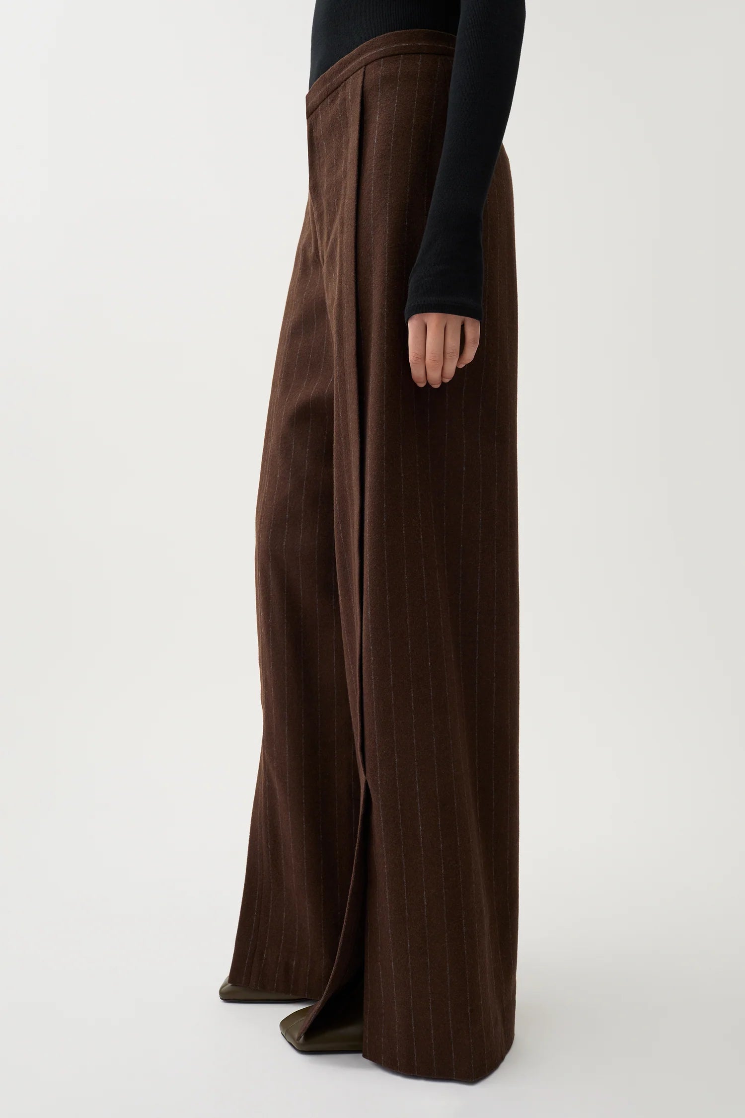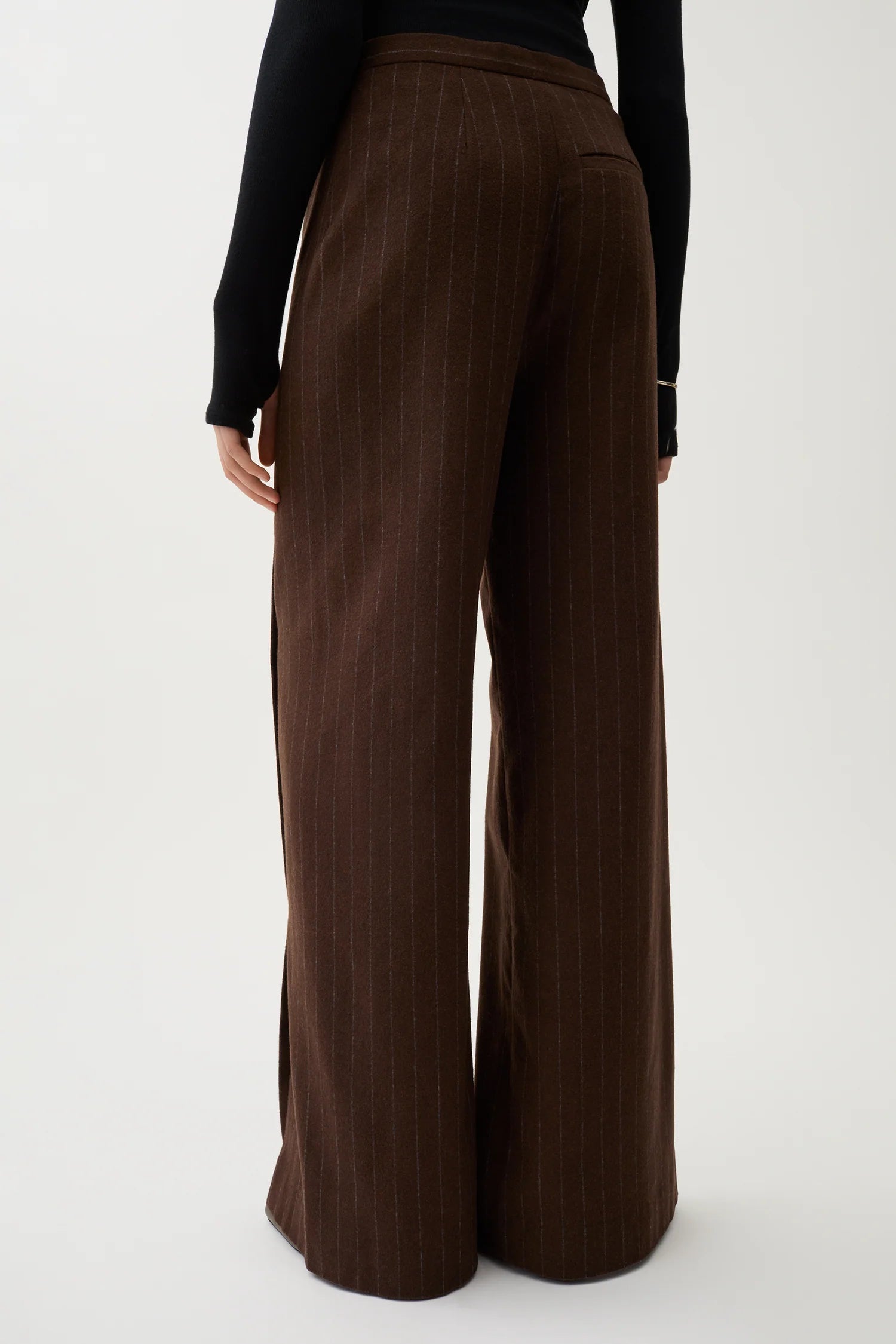 Made from a pinstriped blend of wool, the Rubin pants showcase Rodebjer’s take on classic tailoring codes. This high-waisted design falls to wide legs that flow down the figure, and is punctuated with front folds and side pockets. Pair with flowing blouses, printed pieces and knitwear alike.