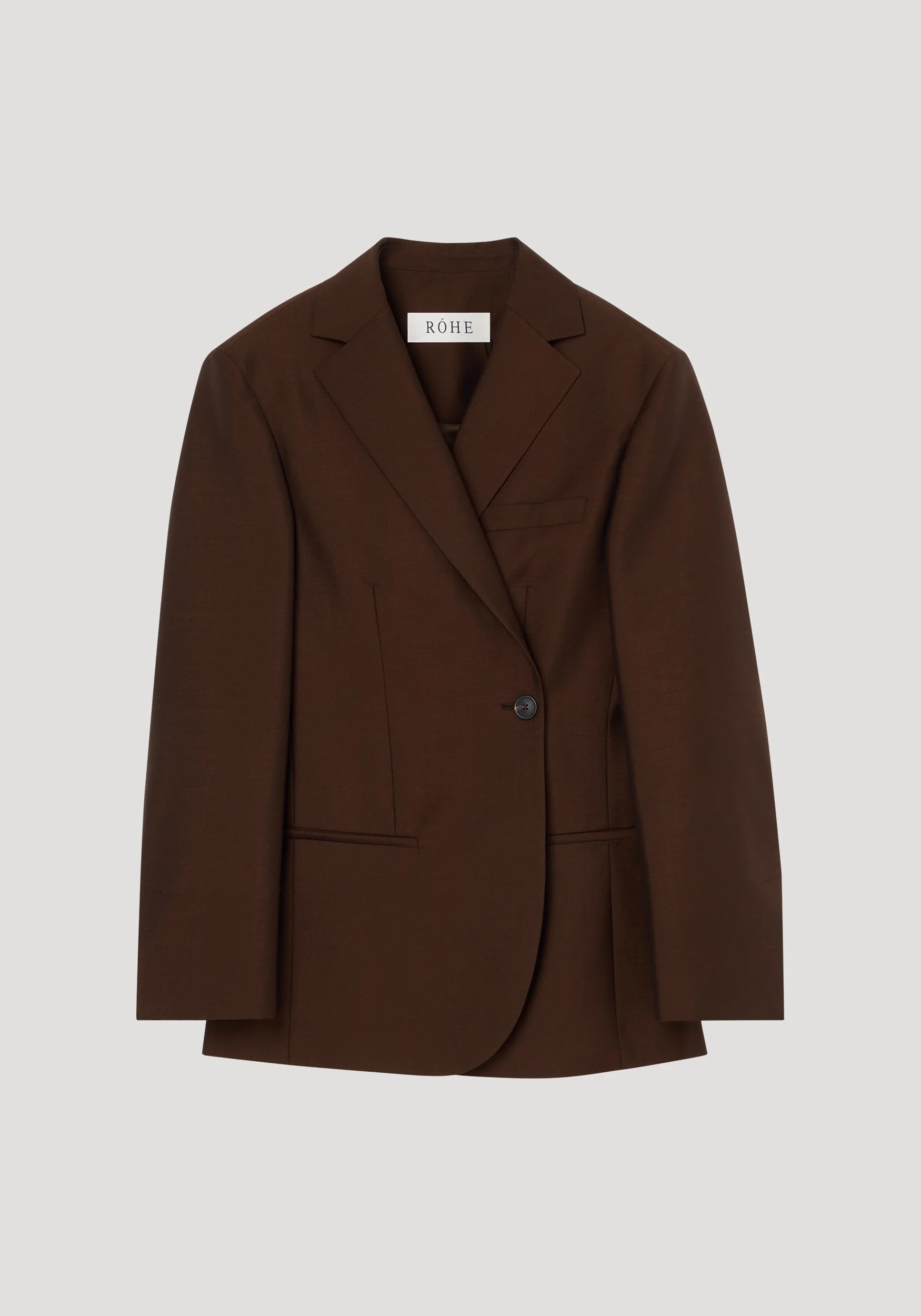 A modern take on tailoring, this single-breasted suit jacket is cut from a dual-tone piqué fabric. It features a clean overlap front and a sharp tailored fit. Perfect to style effortlessly as a tonal suit with the matching mid-waist tailored trousers. Overlap suit jacket, tailored fit, dual-tone piqué, welt pockets.