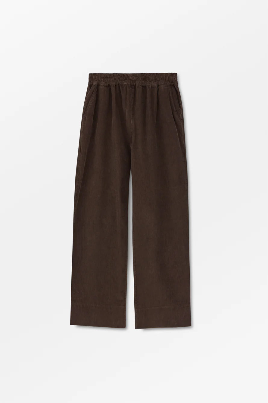 Jasmine pants are a pair of wide pants with a comfortable fit with slightly cropped legs crafted from an exclusive cotton corduroy. The pants feature side pockets and an elastic waistband.