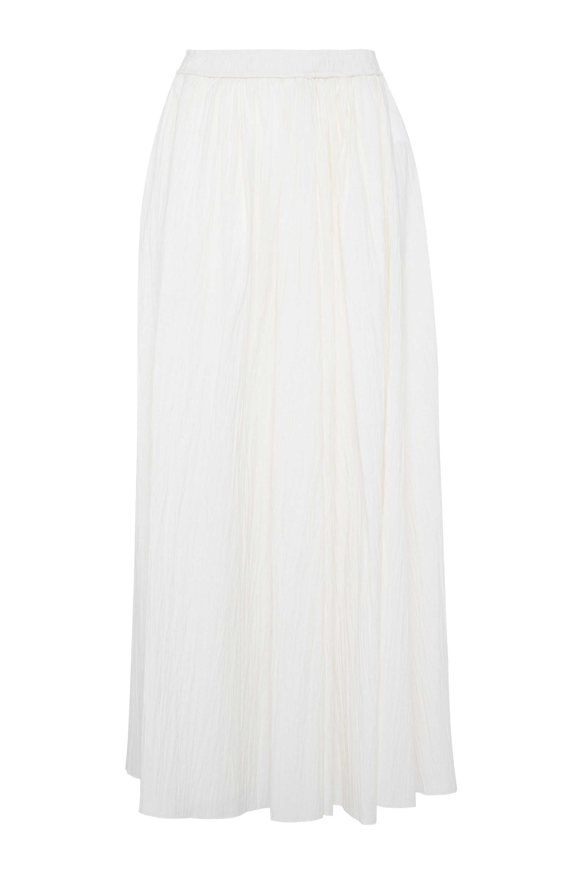 Midi length crushed white cotton skirt with medium volume , cide pockets and elasticated waist band.