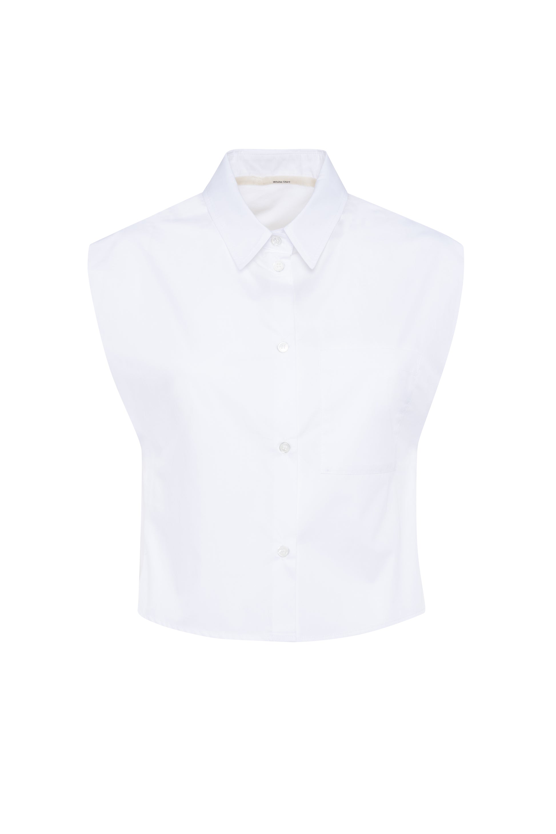 Sleevless , cropped cotton shirt in a crisp fabric with a side pocket .