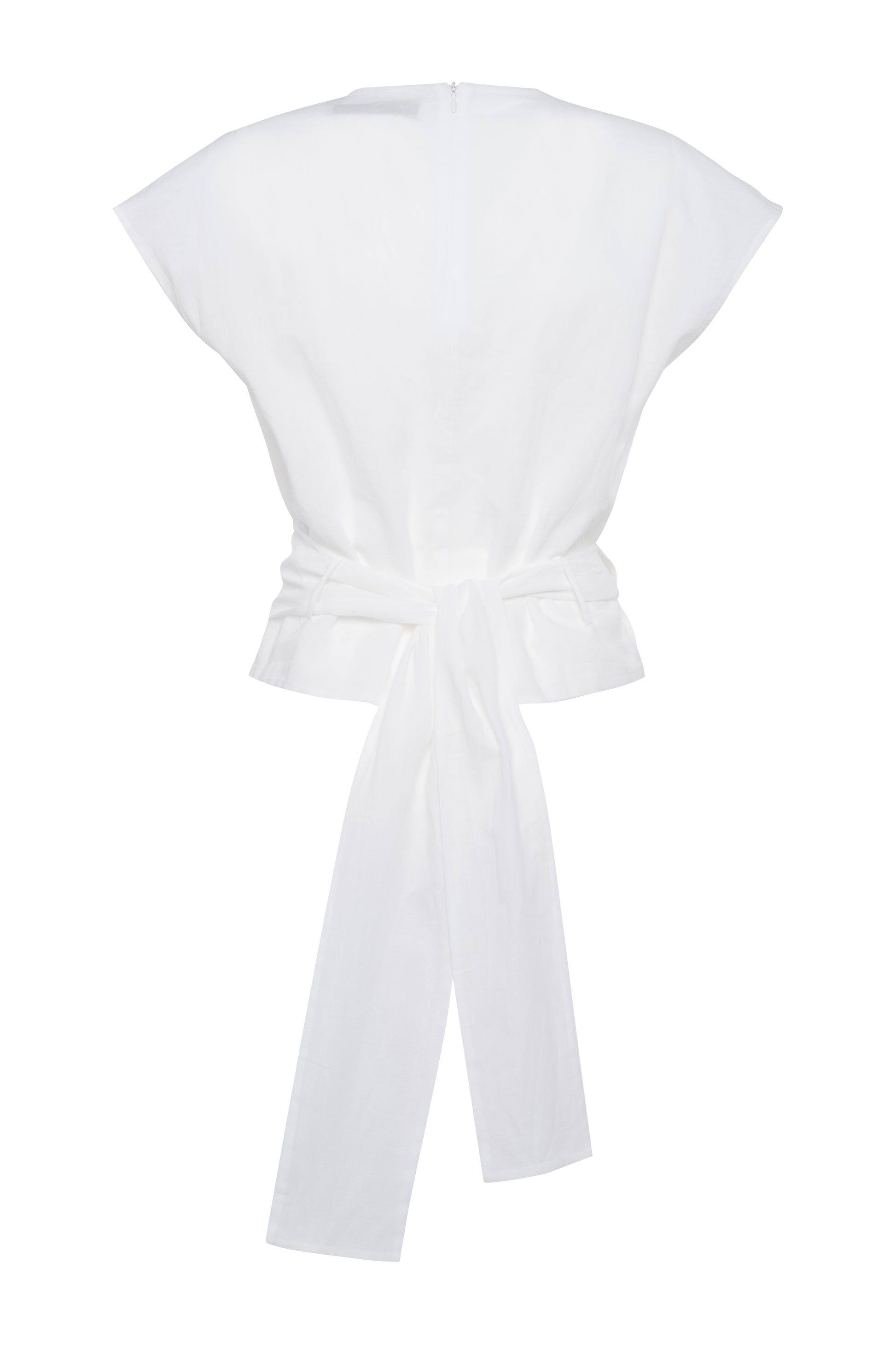 Cup-sleeved top in light muslin cotton with a belt in the waist.