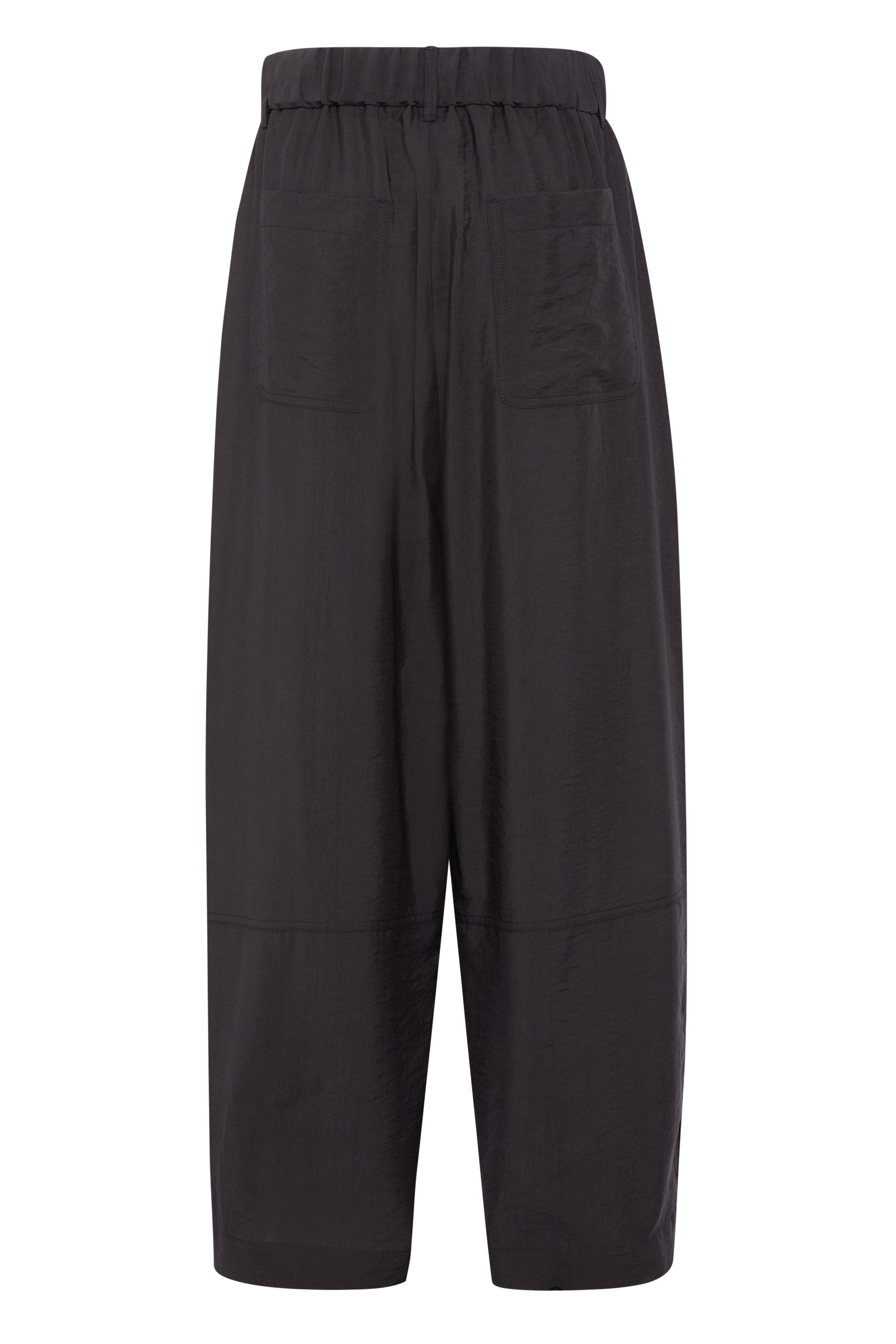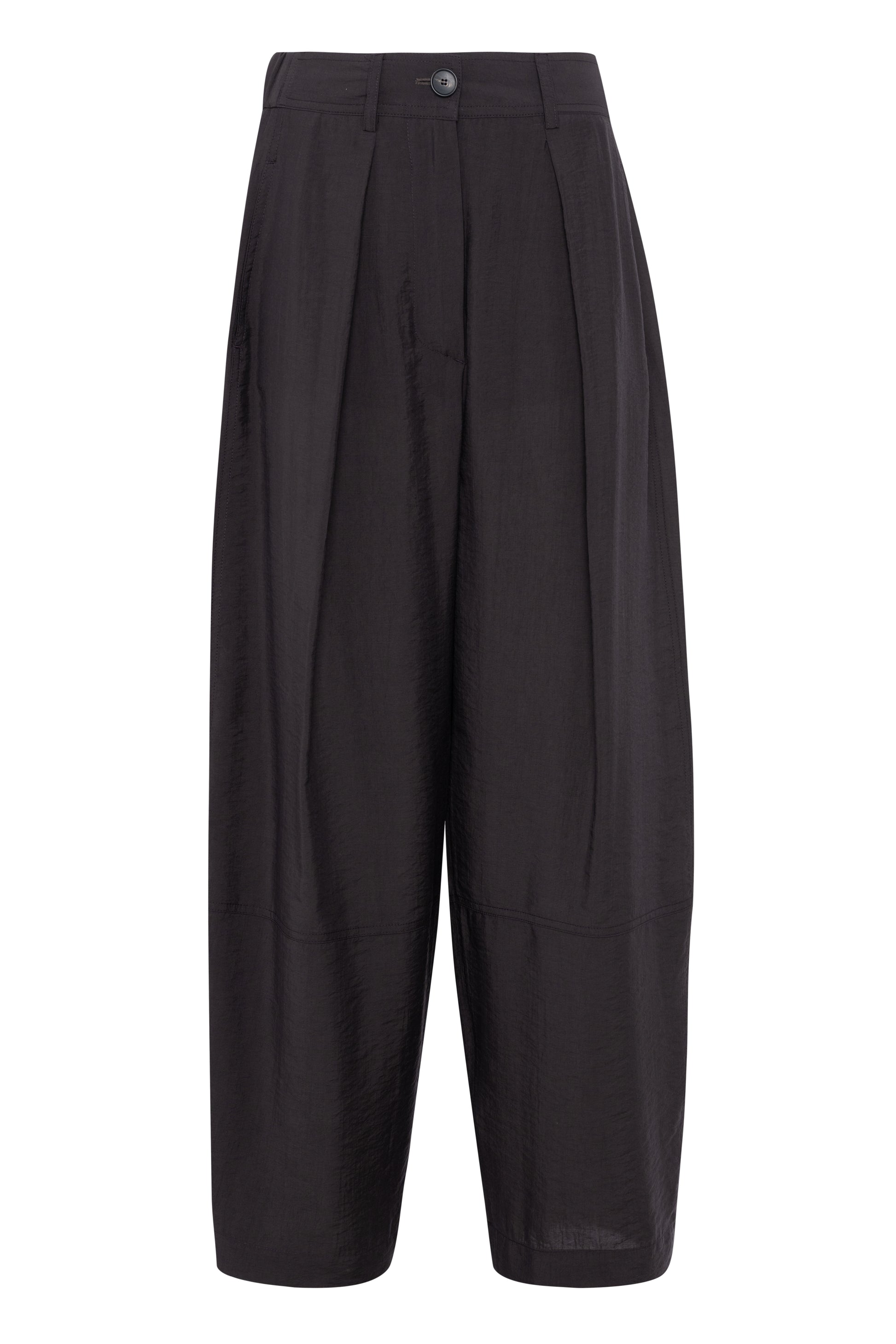Casual pant in a high rise, wide-leg in dark coffee tencel fabric. Featuring a button and zip fly closure, straight hem, both back and side pockets and elasticated back waist.
