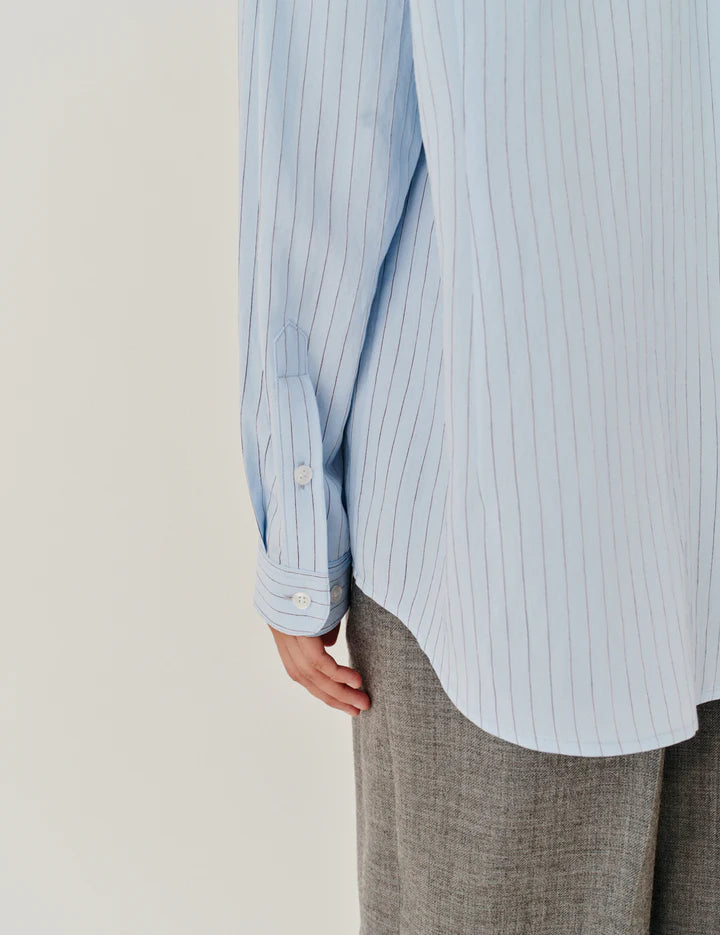 The Costa Shirt features an asymmetric draped button closure, adding a modern and sophisticated twist to a classic silhouette. Its unique design elevates everyday style with effortless elegance.