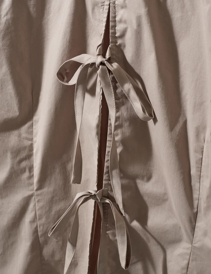 The Cyprus Button Shirt reimagines the classic white shirt with a feminine touch, featuring an elegant open back adorned with bow detailing. A subtle side-front button adds versatile styling options for any occasion.